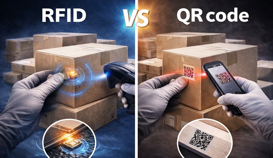 答:超高频RFID标签在近场天线下读取距离为0.5-1.2米,支持整包批量识读,远超二维码的接触式或近距离扫描范围。